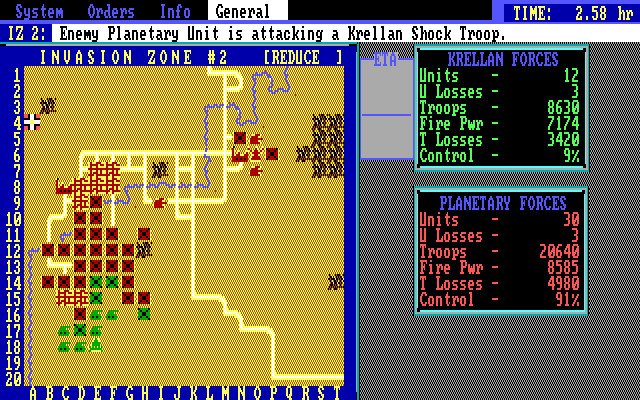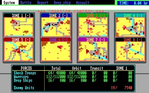 Star Fleet II сочетает в себе не одну, а две игры: при высадке на планету действие переключается на полноценную тактическую систему высадки, где вы контролируете операцию по завоеванию с детальной картой поверхности. Вы можете назначать до восьми зон высадки с экрана управления вторжением или лично вести подразделения: захватывайте города и заводы, выводите из строя генераторы щитов, планетарные фазеры, системы ПВО и пусковые установки ракет, уничтожайте войска UGA и местные ополчения. Боевые действия происходят в реальном времени (с возможностью паузы), как и космические сражения.