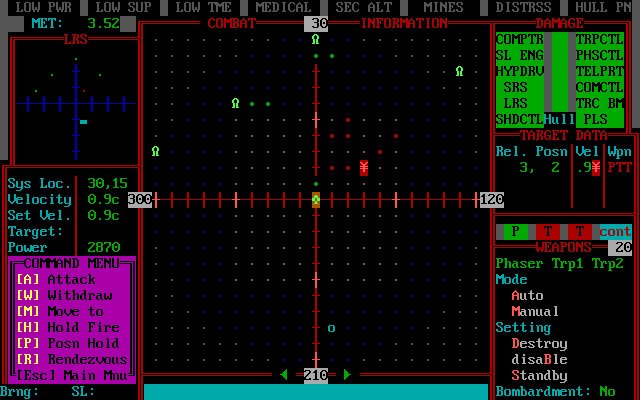 История версии: оригинальная игра 1989 года вышла в спешке и содержала множество ошибок; последующие правки привели к версии 1.5B (около 1991 года). В 2018 году автор Тревор Соренсен вернулся к проекту на восстановленном 486 PC и довёл его до обновлённой 2.0, внося существенные правки и улучшения. Учтите, что игра создана в духе DOS-эпохи и не использует многопоточность: всё рассчитывается в реальном времени, поэтому при большом числе кораблей и торпед реакции могут слегка запаздывать - можно ставить игру на паузу. Управление основано на клавиатурных сочетаниях, мыши нет, но есть подробные и удобные клавиатурные команды и восемь полноценных обучающих уроков, которые помогут освоить навигацию, бой и планетарные операции.