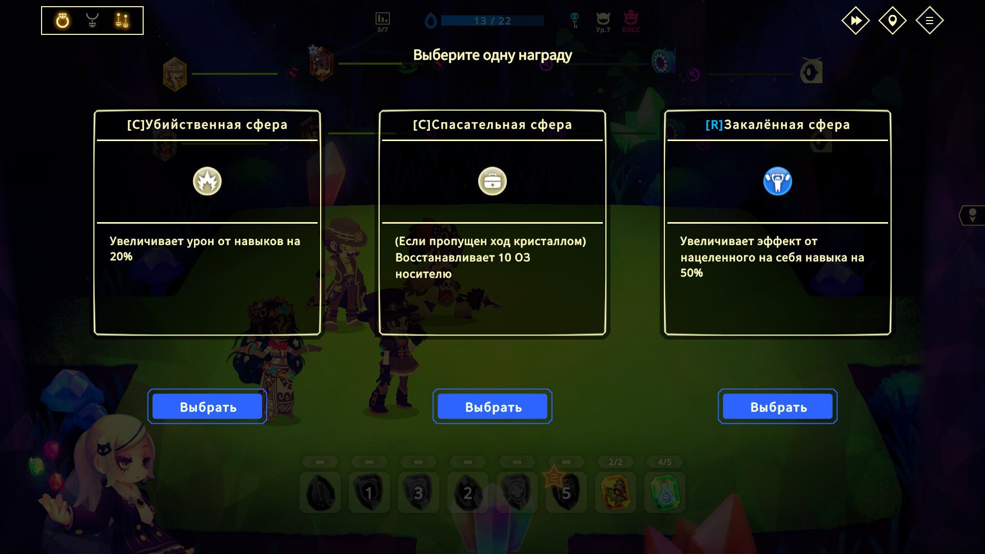 Собирайте и комбинируйте одинаковые самоцветы, чтобы получать баффы и синергию; каждый персонаж может прикрепить "Сферу", что позволяет бесконечно расширять отряд.